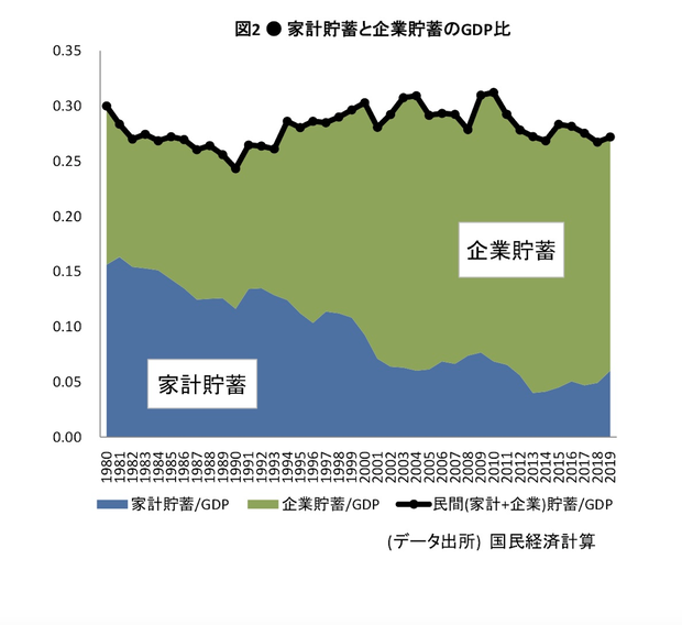 家計貯蓄と企業貯蓄のGDP比