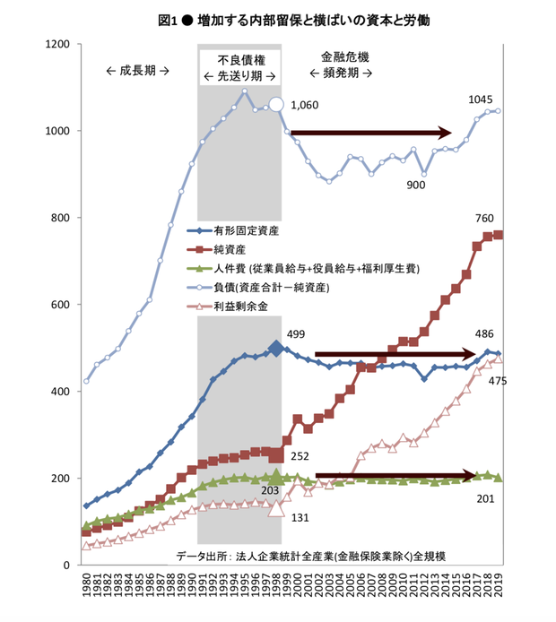 増加する内部留保と横ばいの人件費