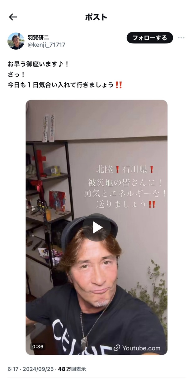 — 羽賀研二 (@kenji_71717) September 24, 2024