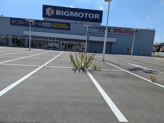 【画像】閉店したビッグモーターに草花が生い茂るwwwwwwwwwww