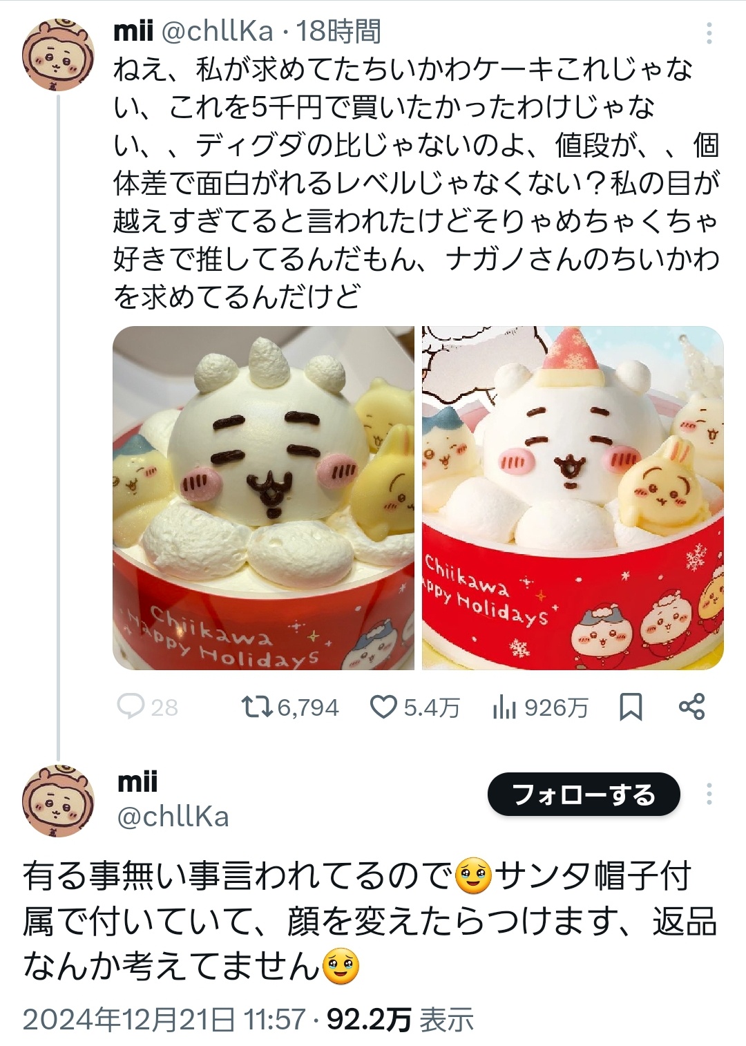 【悲報】「金返せ!こんなの"ちいかわ"じゃない!」セブンのちいかわケーキ(\5000)が大炎上