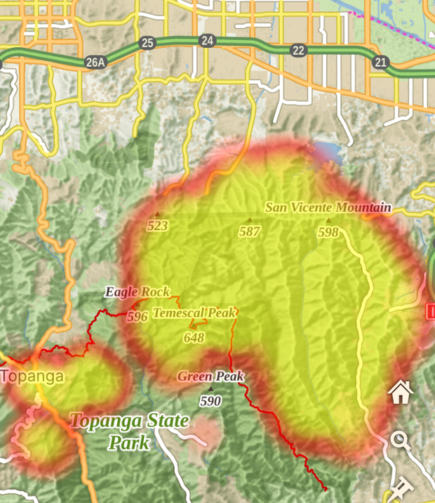 今はパリセーズ北側の山が燃えて徐々に炎上部分が北側に移りつつある感じ