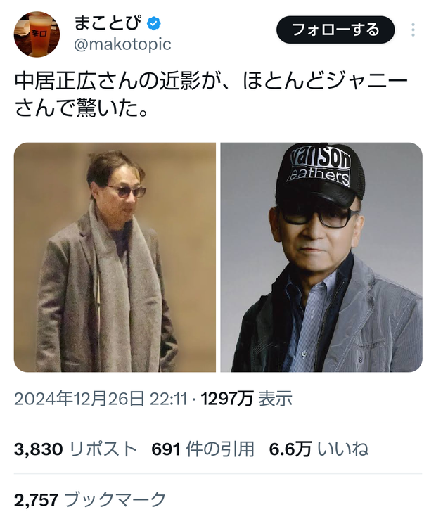 みんな中居が30歳くらいと思ってるみたいだが52の爺さんだからな