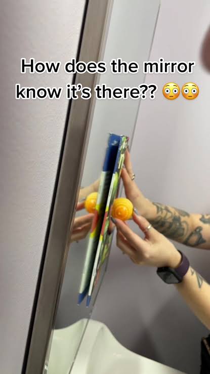 で、その状況を斜めに後ろに立った人が見るとなぜか鏡視点では隠れてるはずの顔が鏡に映ってるのおかしくね?