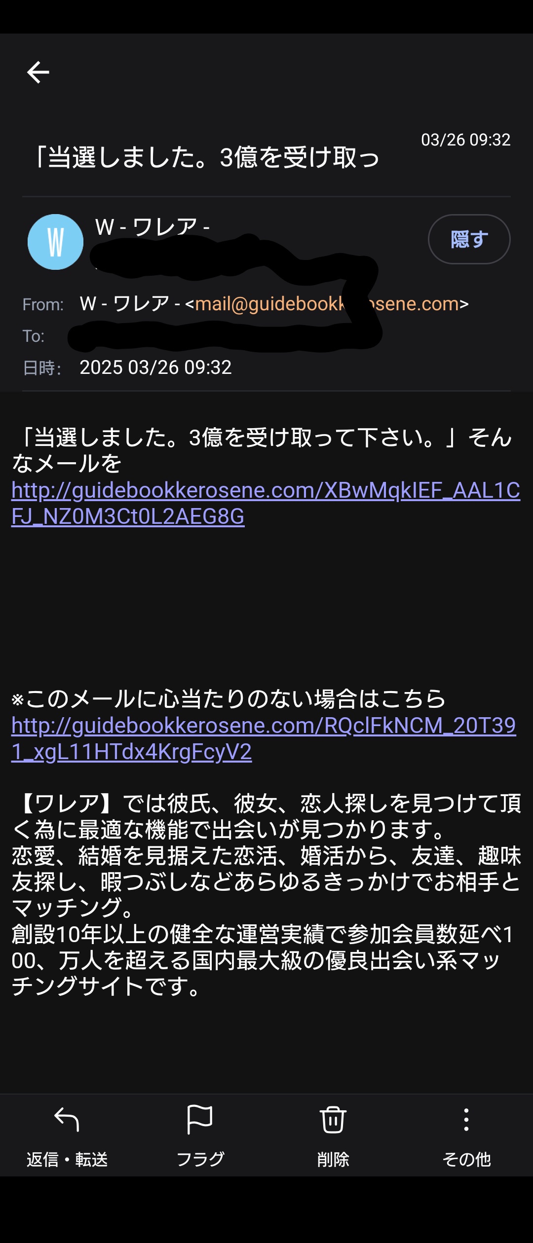 迷惑メール届いてる雑魚とかおるんやな