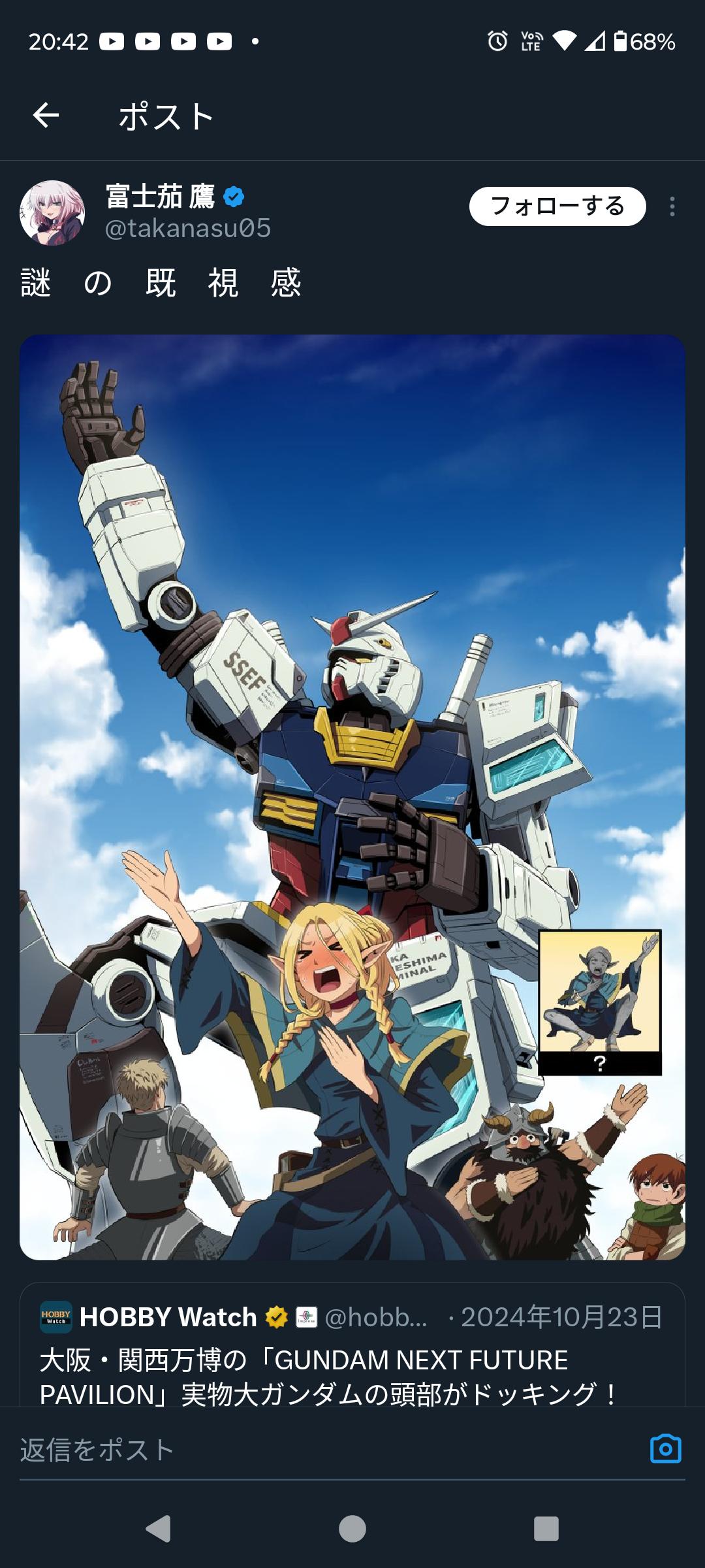 万博ガンダムと石化マルシルのポーズが似てるってツイートがバズったので