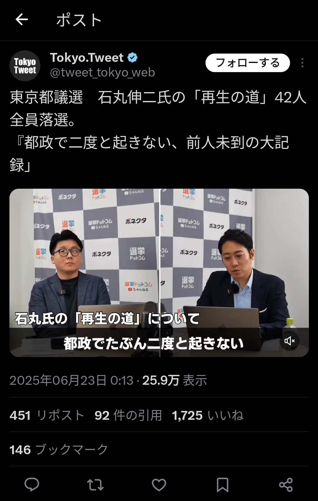 【都議選】石丸伸二氏の「再生の道」が議席ゼロ確実 →「目標はかなえている」