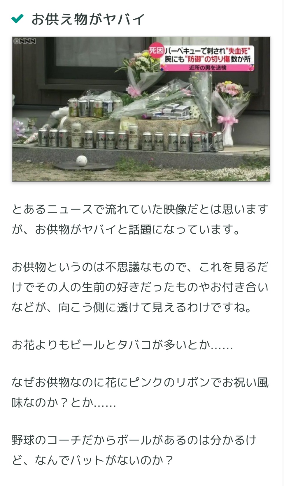 ただ被害者で会っても人の家の前に供える物をもう少し考えろとは思う