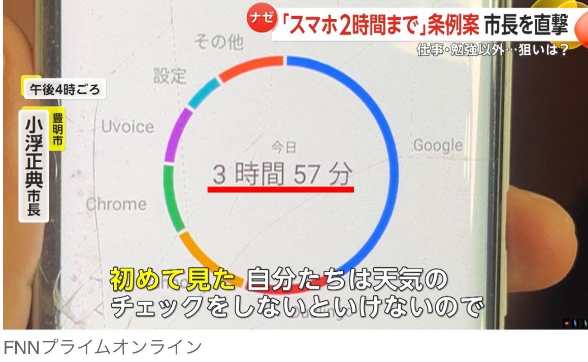 愛知県豊明市で「スマートフォン等」の使用を1日2時間以内とすることを目安にした条例案が9月に提出される見通しで、物議を醸しています。
