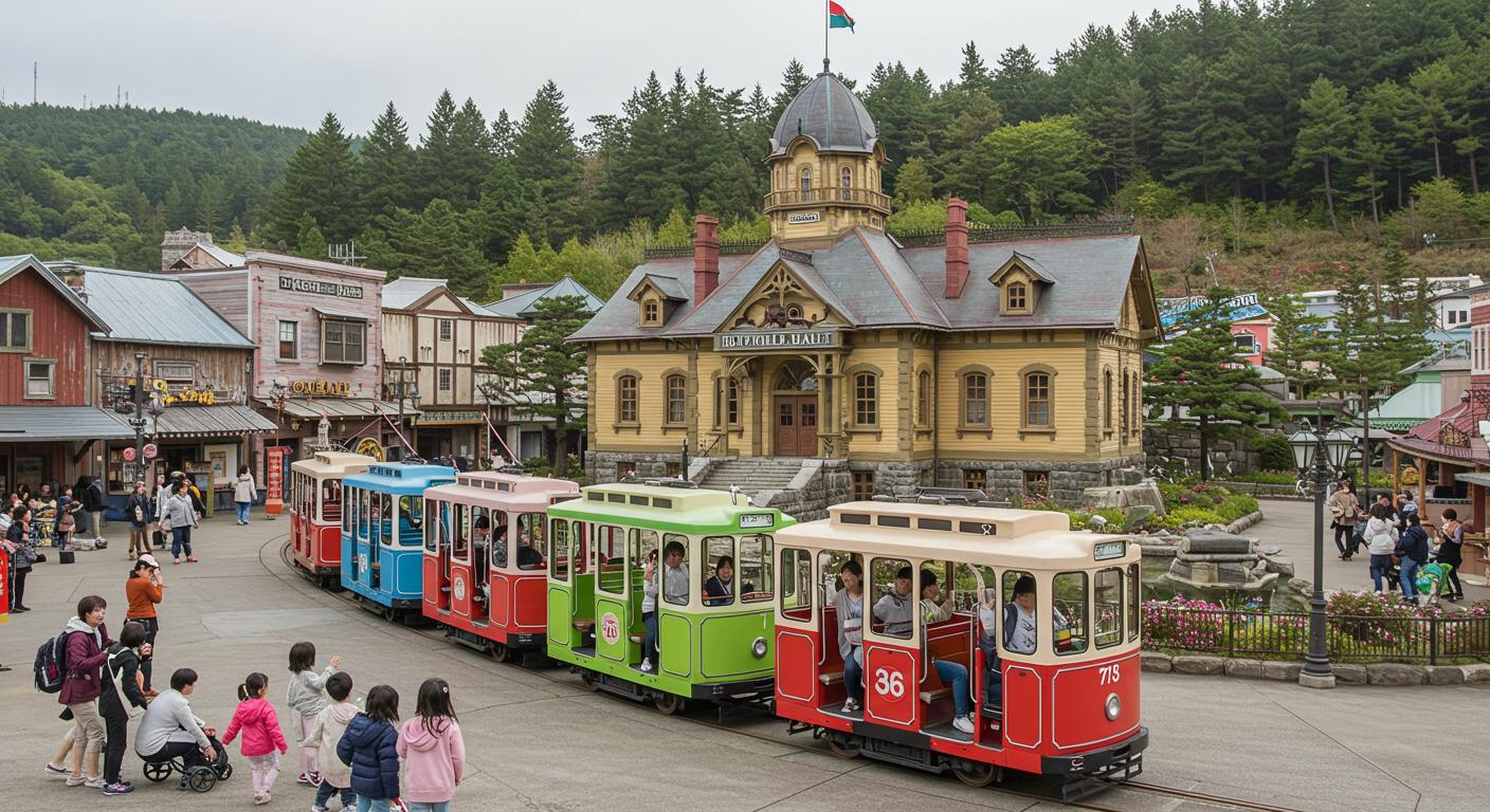 開拓時代の街並みを路面電車でじっくり堪能!中央の公会堂は定時でショウが開催されます