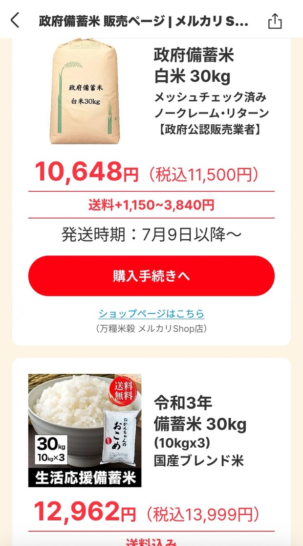 メルカリは備蓄米の自社販売やりはじめて転売は全部消してるぞ