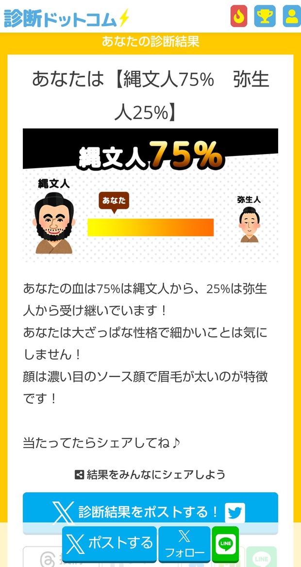 ワキガとか顔の濃さの項目入ってたらもうちょい弥生系だな⋯