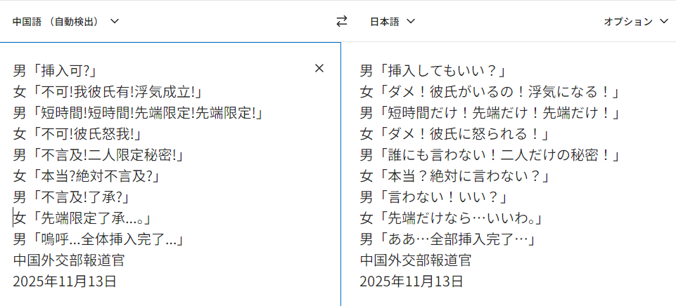 — CHINA MFA Spokesperson Ãæ¹ñ³°¸òÉô发¸À¿Í (@MFA_China) November 13, 2025
