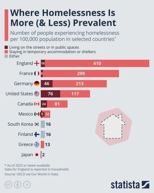 人口10万人当たりのホームレスの数