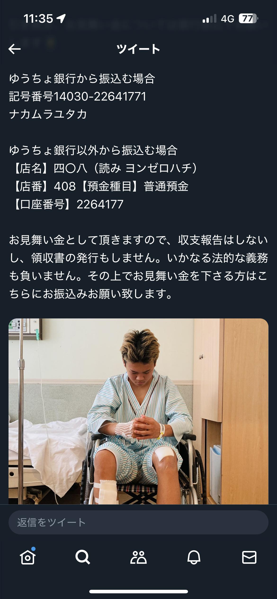 なお本人は批判に対し「欲しいなんて言ってないもん!お見舞い金送りたいって人が多いから口座出してるだけだもん!」と涙目で言い訳してる模様(ならDM送ればいいだろうが)