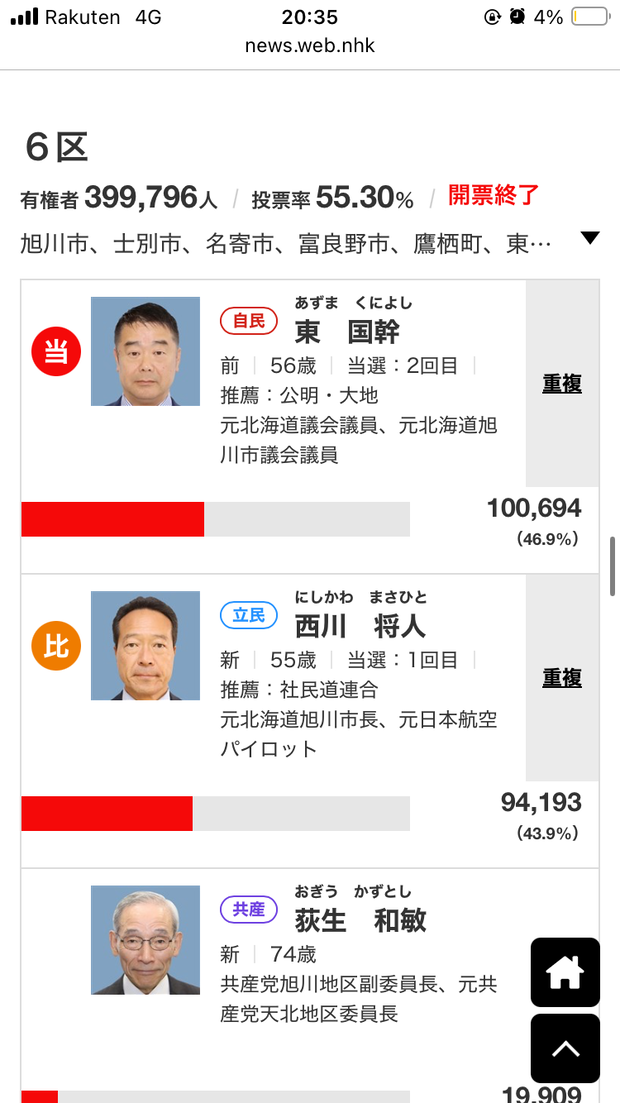 衆院選の北海道選挙区