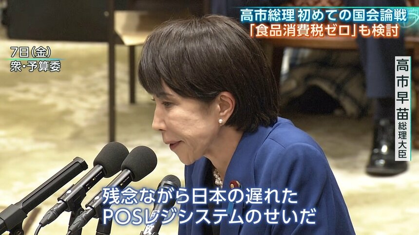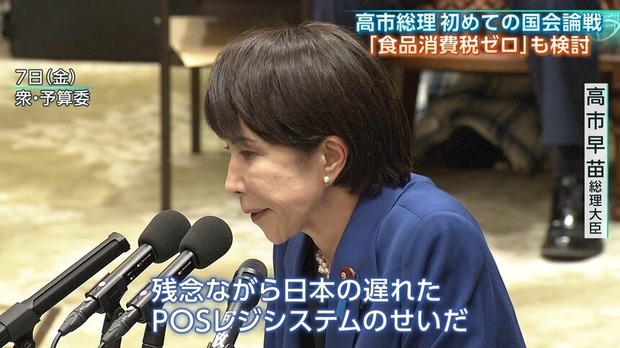 高市早苗総理が「消費税率の引き下げは、レジシステム改修に1年以上かかるため即効性がない」ことを理由に、減税を見送った。