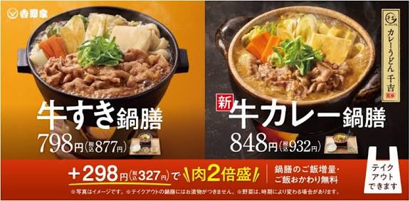 各って付いてるんだから「牛すき鍋膳」と「とんこつ醤油牛膳」は両方同じ値段なんだよな?