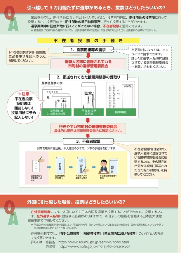 住民票移す前とか移したばかりとかでも、不在者投票ができるのに〜