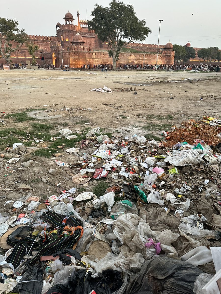 インドの象徴であるレッド・フォート(赤い城)の外には、至る所にゴミが散乱し、その周囲を不毛の地が覆っています。