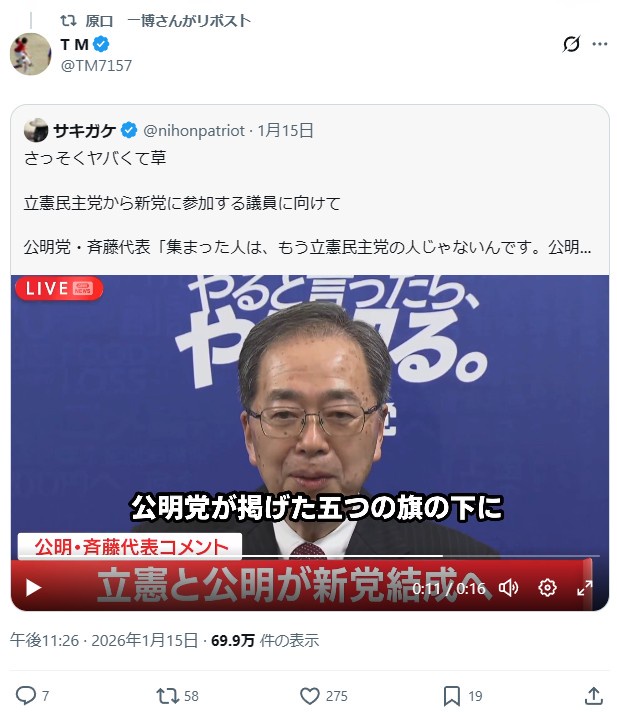 公明党中央幹事「うちは与党もやってたから与党でどうすればいいかわかる。立憲がまともに出来もしないことを言ってたりするのをきちんと教育して自民党と協力していきたい。」