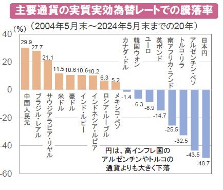 資料を貼るなら引用元くらい記載しろ。今の日本の実質実効為替レートが安いのは長期間続いたデフレのせいだって。