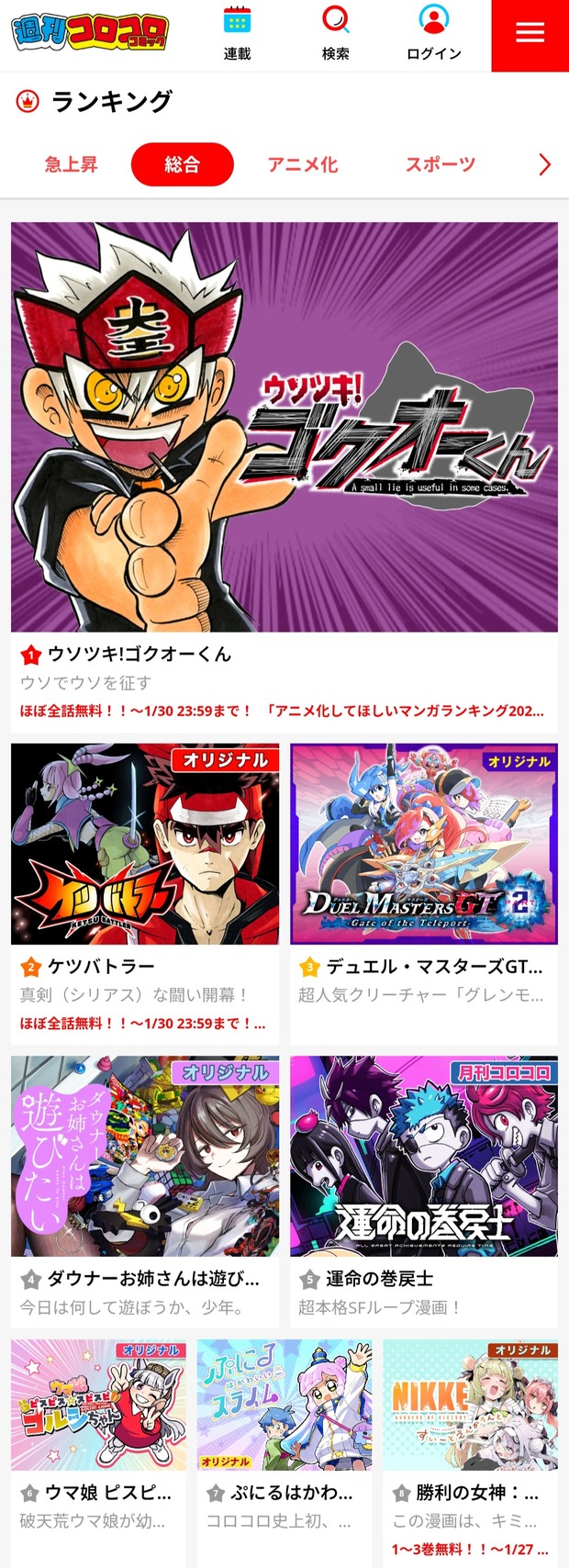 コロコロWeb版人気ランキング