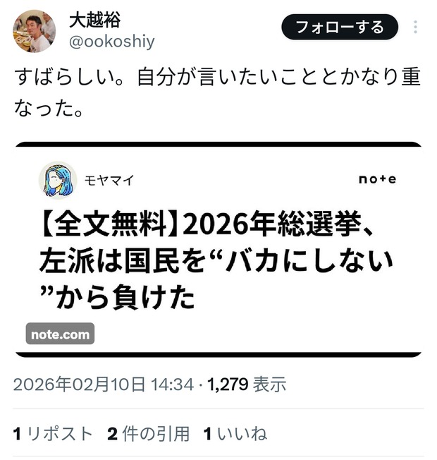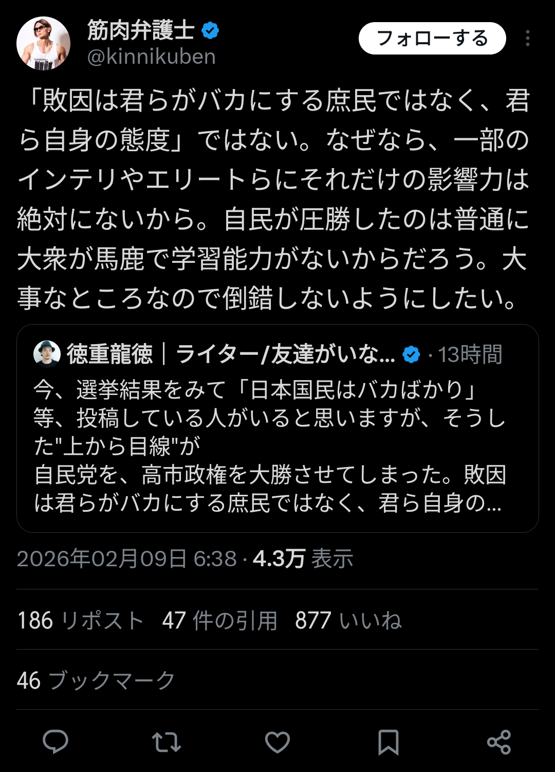 こんな支持者しかいないから勝てないということを示した、実に優秀なコメント
