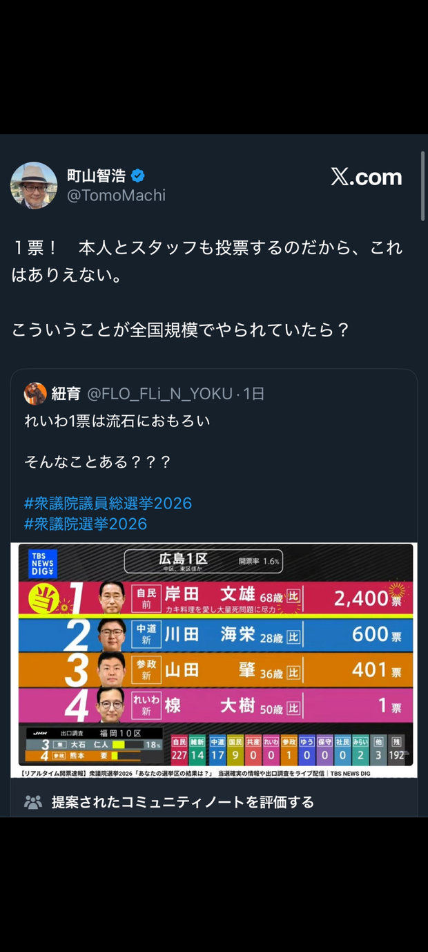チームみらいの政策がいいとか、候補の履歴がいいとかで選ばれた結果じゃないと思う