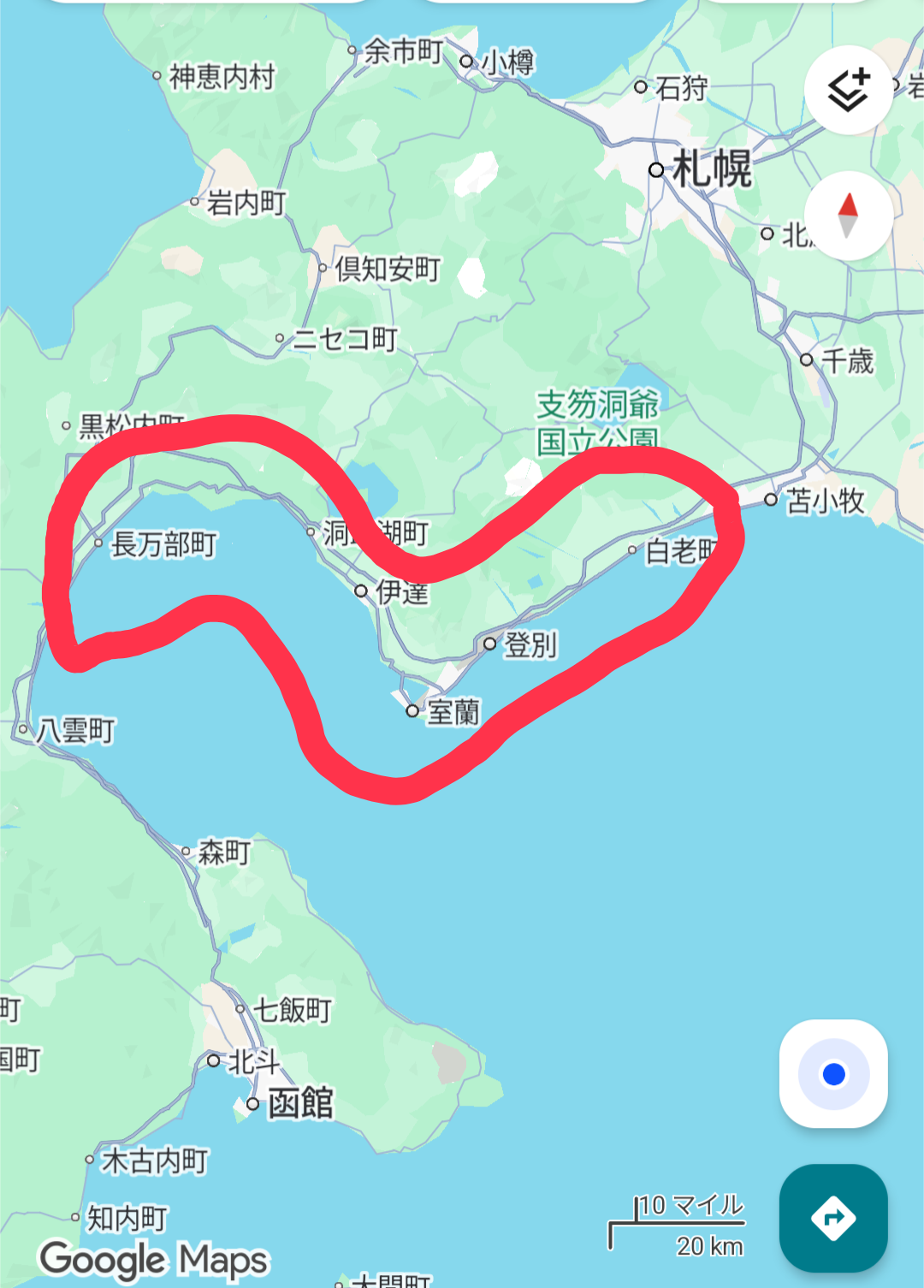 こっちのルート選ぶと登別とか支笏湖、洞爺湖が見れなくなるんだよね