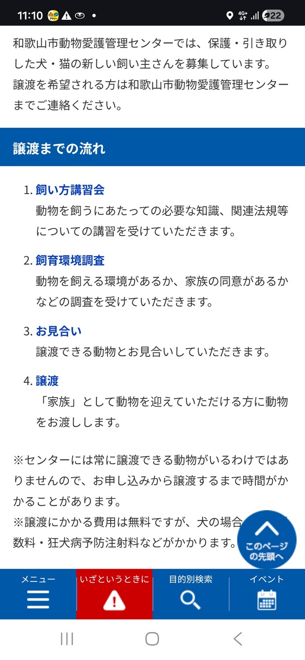 ※センターには常に譲渡できる動物がいるわけではありませんので、お申し込みから譲渡するまで時間がかかることがあります。