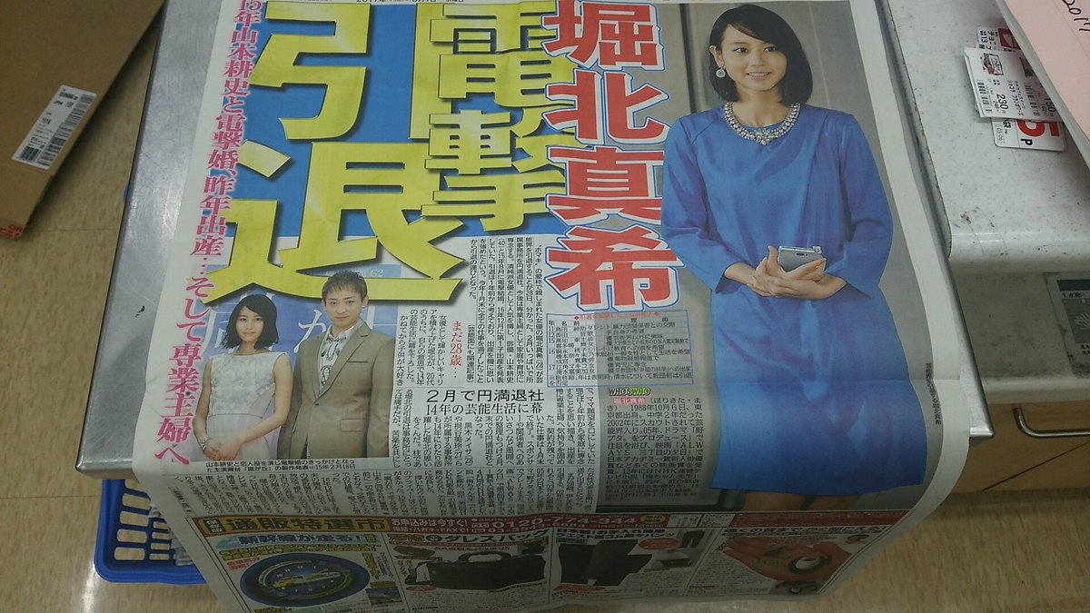 堀北の妊娠は、21日発売の女性自身が「オメデタ!?堀北真希 女優より母として生きる」と報じた。都内の総合病院の産婦人科を極秘で訪れた堀北を隠し撮りした写真とともに、「緊張の面持ちで産婦人科へ入っていく」様子や、病院から出てきた掘北を「とても穏やかな表情」「母になる喜びがにじんでいる」と伝えた。その後、スポーツニッポンは出産予定日が来年1月になると報じた。