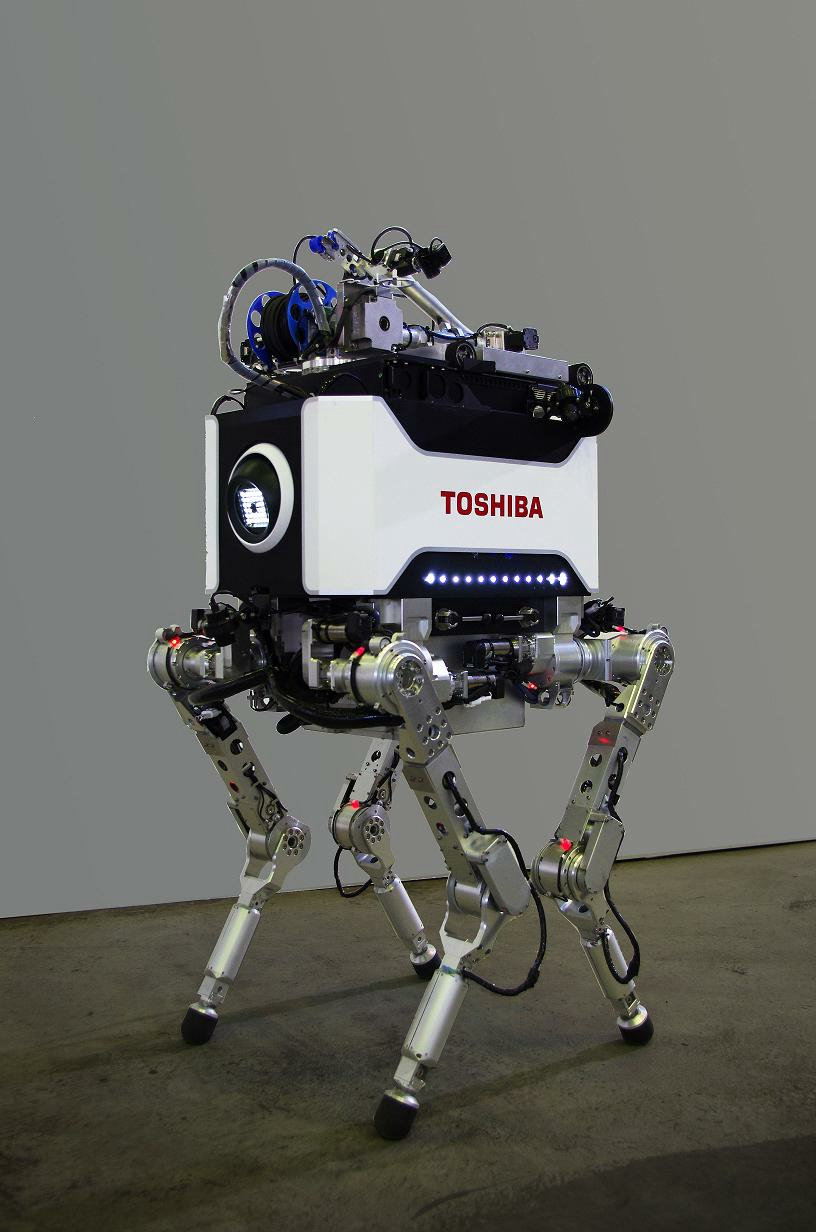 東芝が福島第一原子力発電所向けに、人が作業できない場所での調査や復旧作業を実施する四足歩行のロボットを開発しました。ロボットは無線操作で動き、歩行速度は時速1km。連続では2時間の駆動が可能だとのこと。